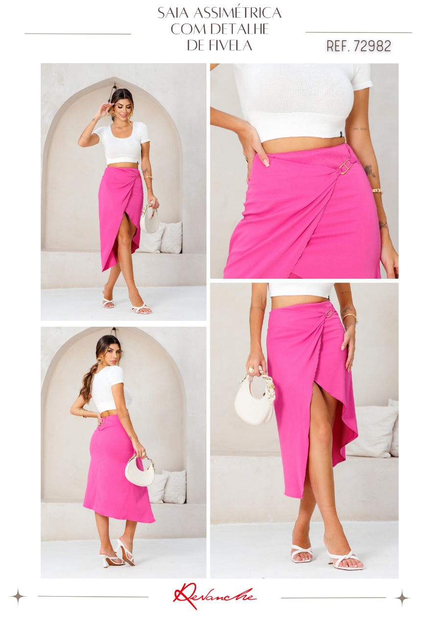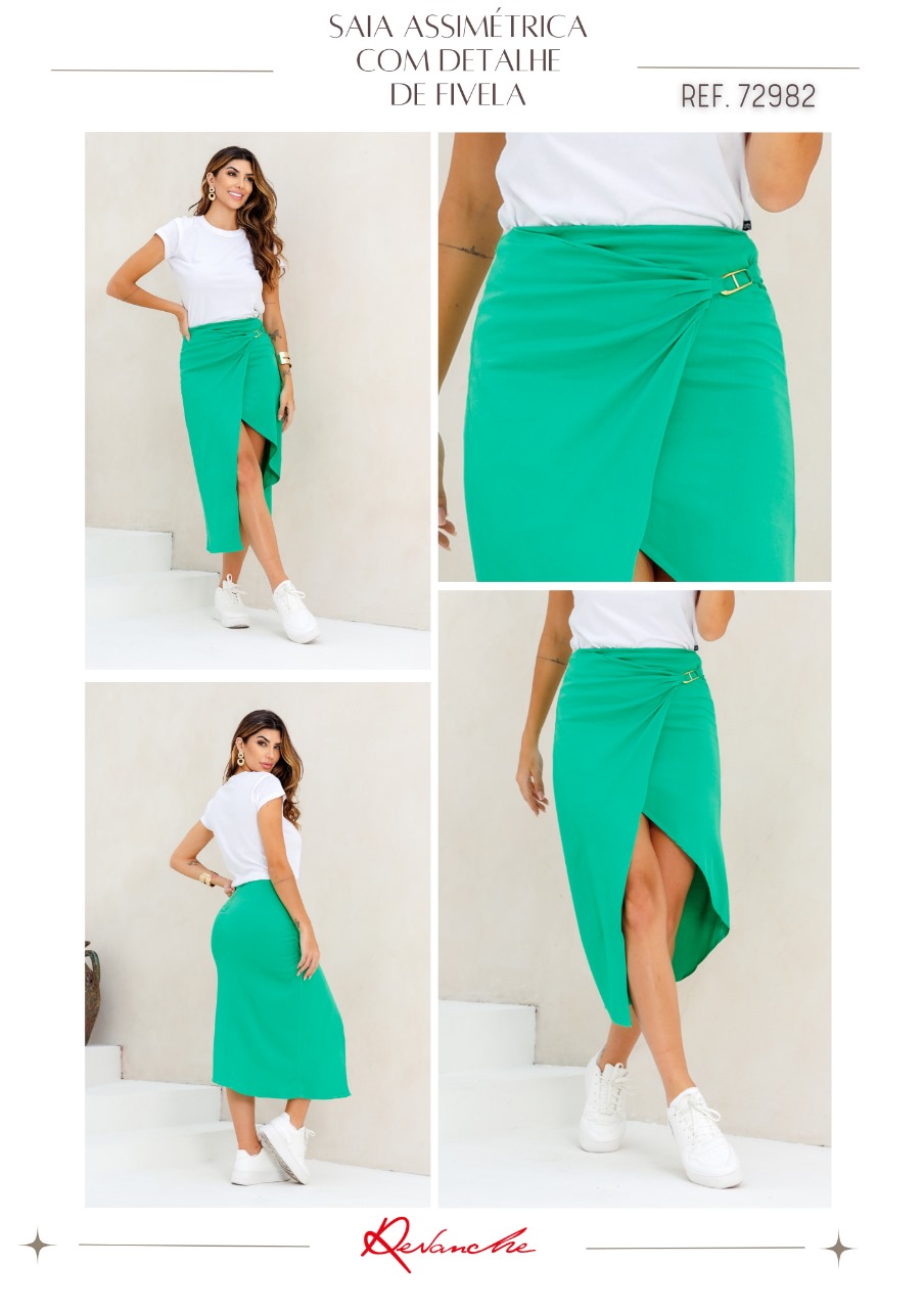 Linda Saia Assimétrica com Detalhe de Fivela Revanche, Feita no Tecido Viscose.